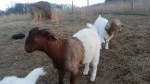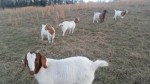 Here are a few pictures of the new Boer goats. This makes 7 females altogether, as we already have 2 mature does. These are just the young does, the young billy is in the barn with the mature club lamb bucks staying nice and dry for the winter. It is also unseasonably warm for January 17th (50’s), so we took a walk in the pasture.